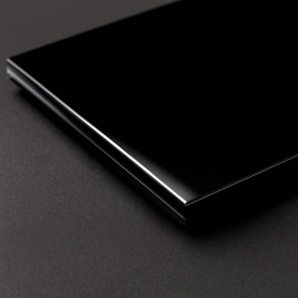 6 mm Gesamtstärke mit hochglänzendem Acrylglas und schwarzem Dibond-Kern